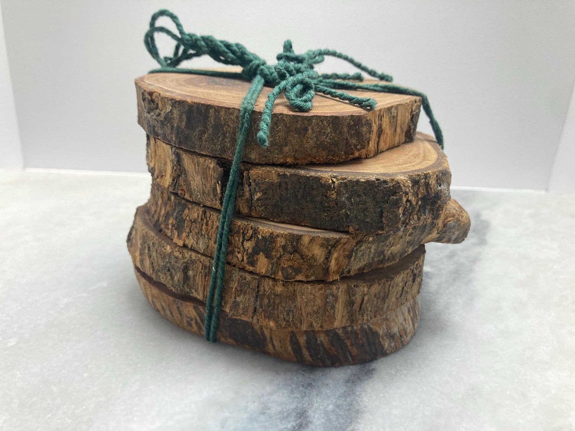 Olive Wood Coasters Set Of 5, Rustic, Handmade, Wooden Slabs, Bar Decor, Zero Waste Gift 14cm x 13cm Unique Gift, Natural Gift, Wedding Gift