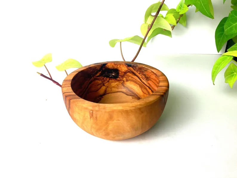 Its compact size makes it ideal for individual servings or for organizing small items on your dresser or coffee table. Enhance your home decor with the warmth of olive wood and enjoy the natural beauty and character of this lovely handmade bowl. Makes a thoughtful gift for nature lovers, food enthusiasts, or anyone who appreciates the artistry of handcrafted items.