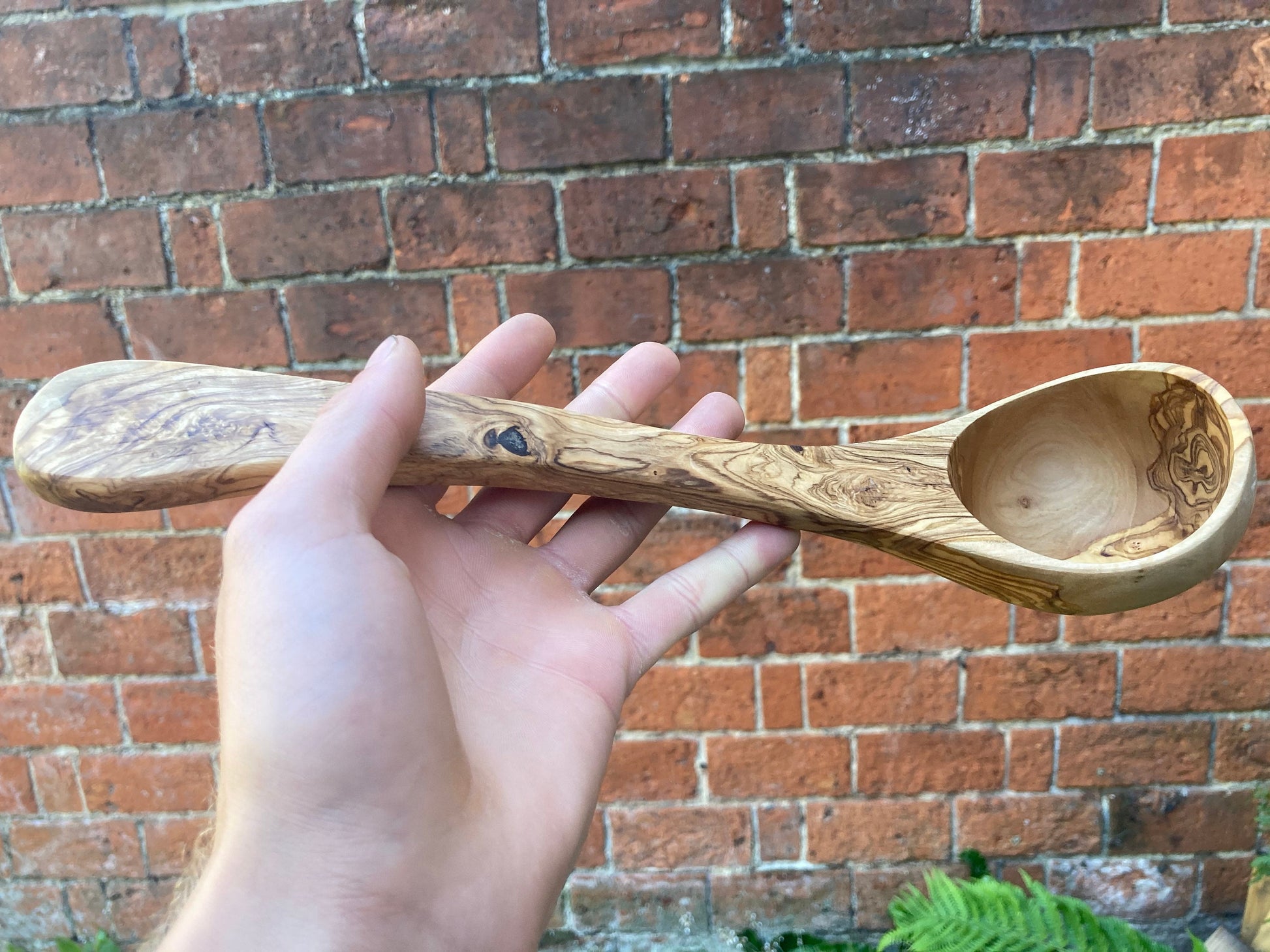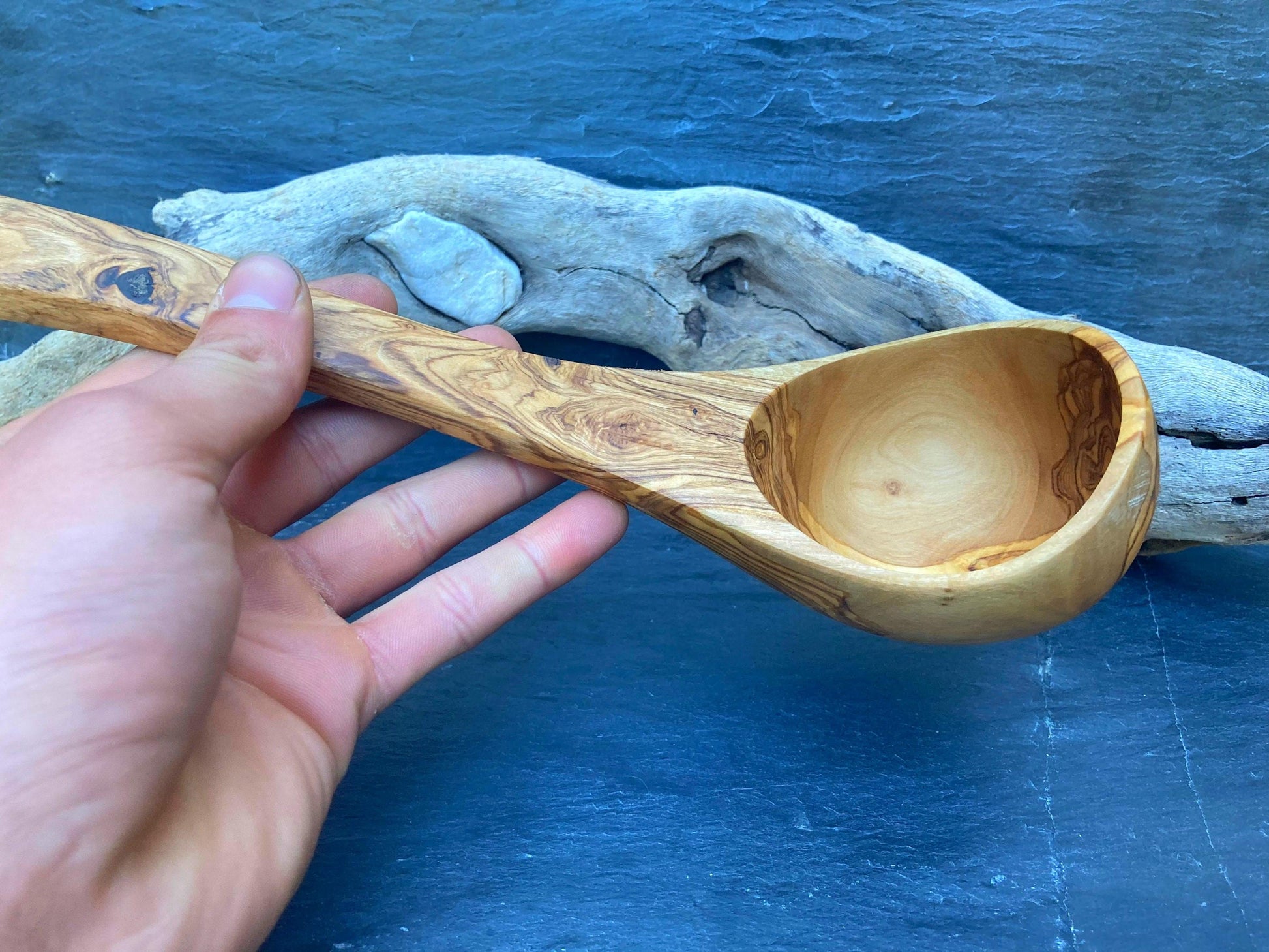 Traditional Olive Wood Ladle, Large Serving Spoon, Rustic Sauna Ladle, Kitchen Utensils, Handemade Soup Spoon, Zero Waste Gifts 30cm